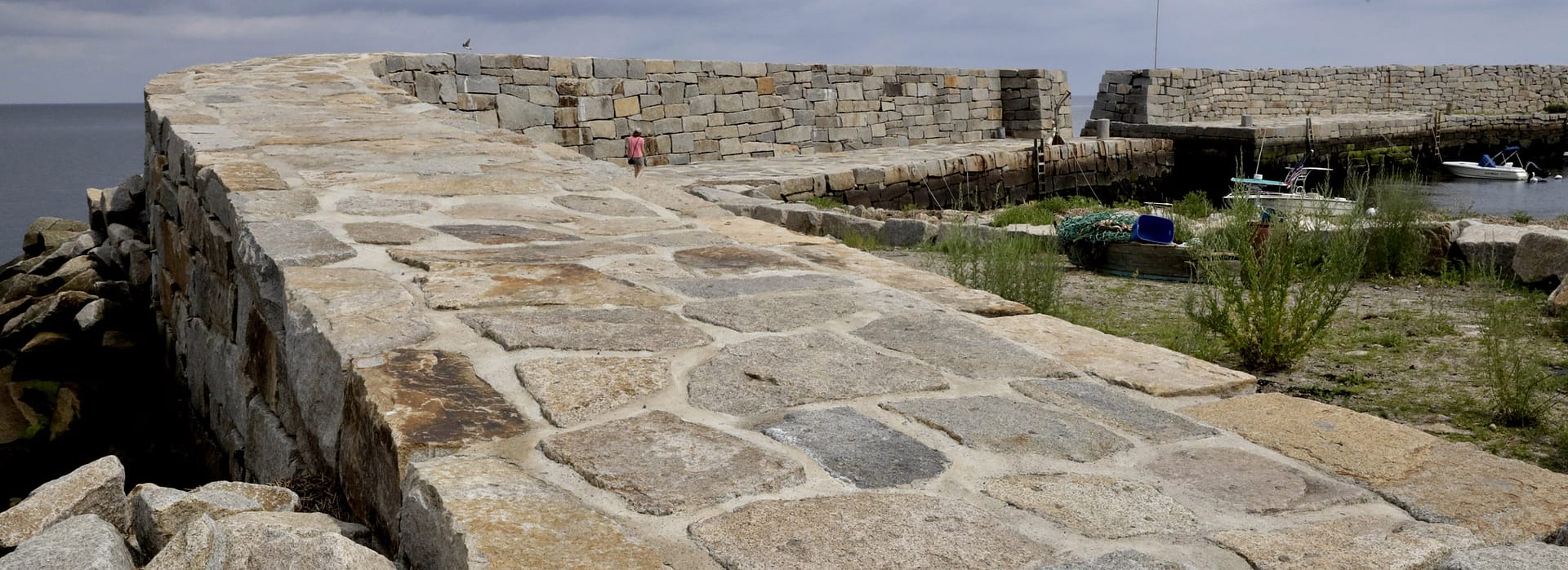 Restoration project for the Jetty in Lane’s Cove, Lanesville, MA. Stone type is Cape Neddick Granite and Reclaimed Rockport Granite blocks. This iconic seawall is really worth a visit. The massive granite structure has been protecting Lane’s Cove successfully for generations. The large granite blocks serve as pavers and wall stone.