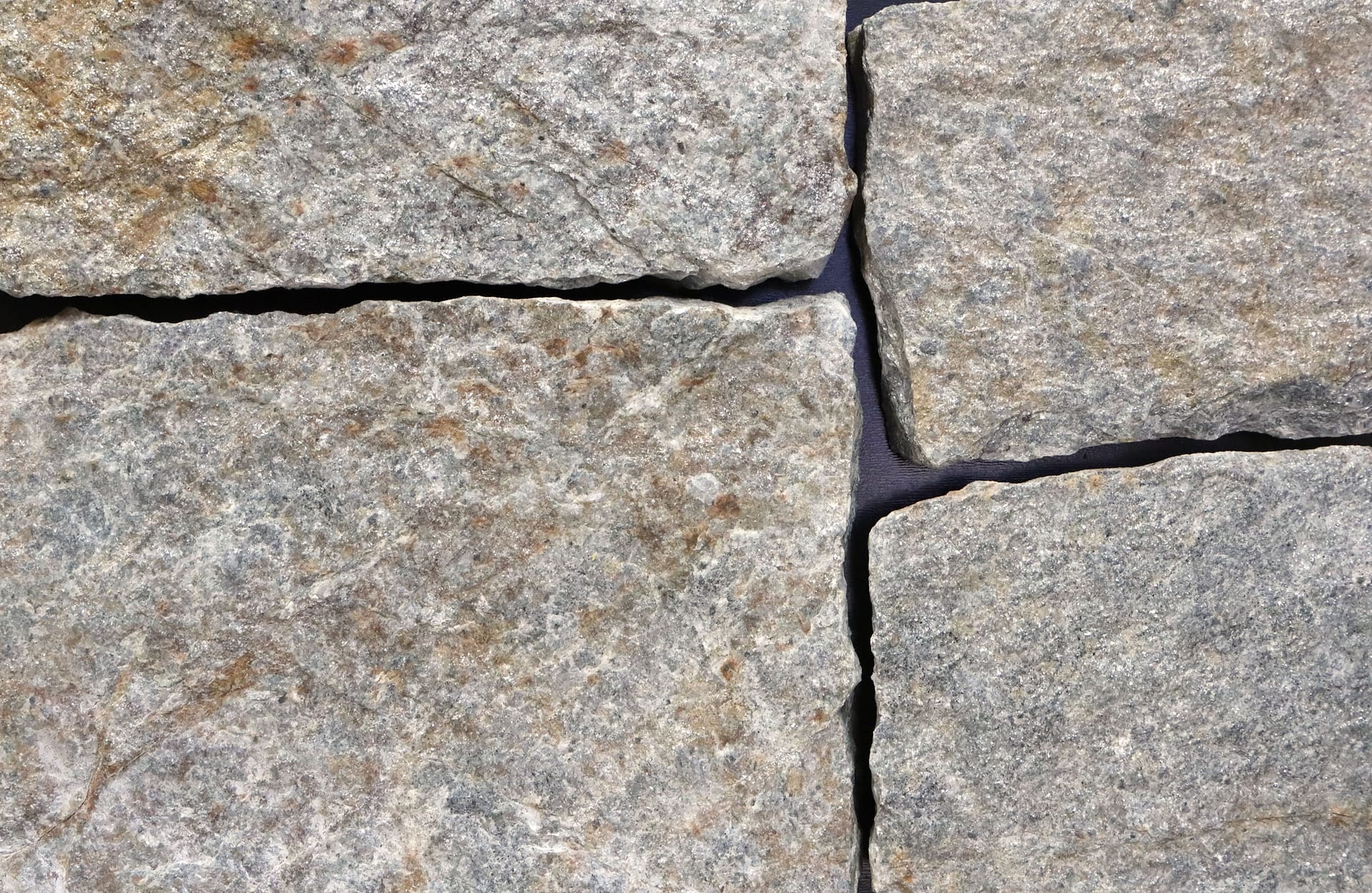 A quarried North American granite natural stone from Vermont. This stone has a somewhat rough texture. The dominant color is gray. The color mix creates a warm feeling. Regular and cloudy color patterns. Contains some mica. This is a building stone for indoor and outdoor commercial and residential applications. Moderate to higher on the price spectrum.