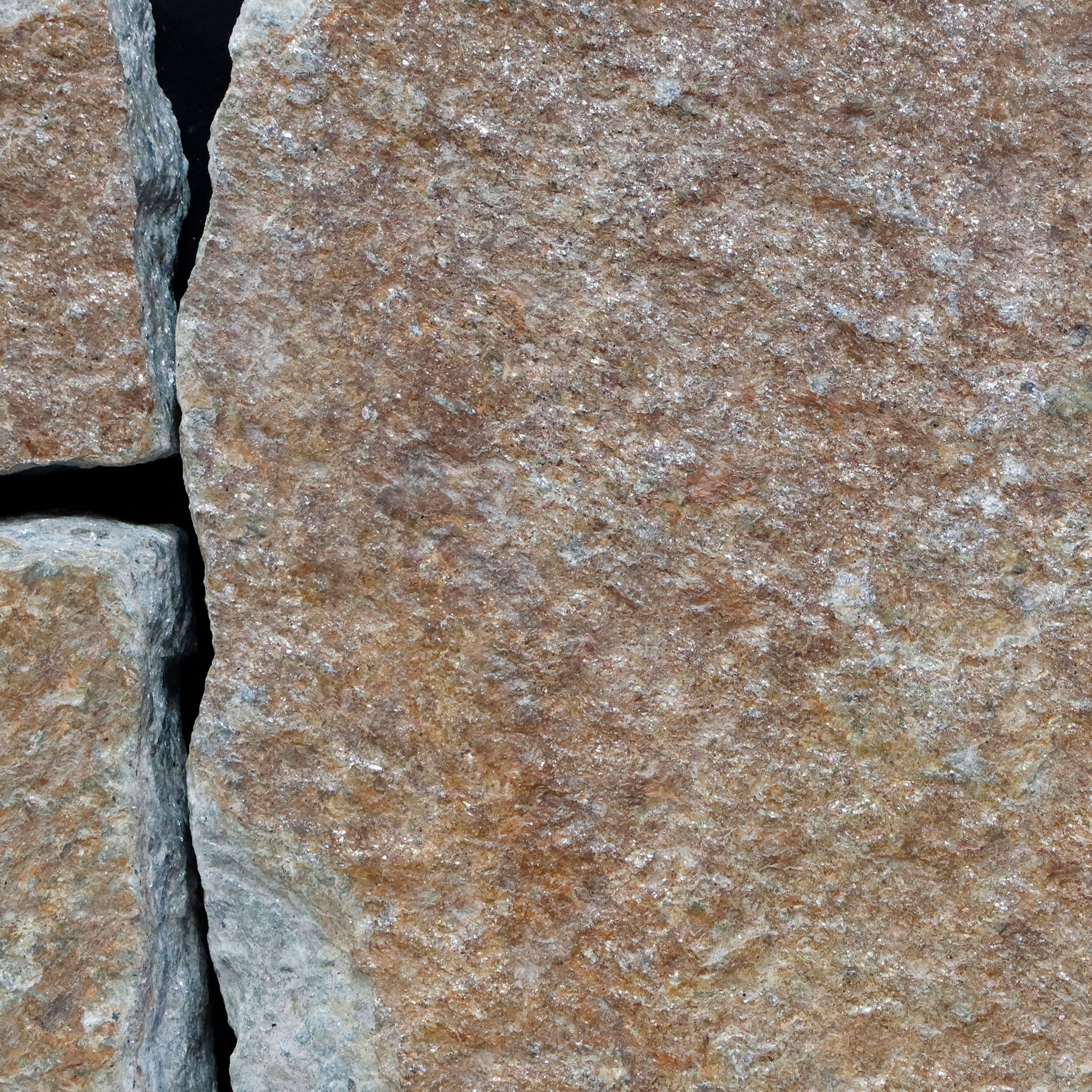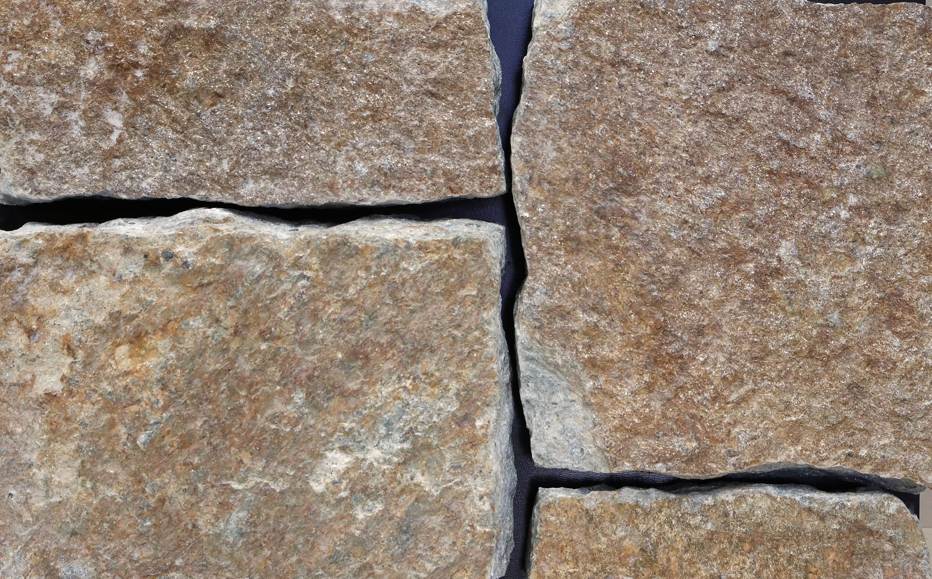 A quarried North American granite natural stone from Vermont. This stone has a somewhat rough texture. Dominant colors are brown and gray. The color mix creates a warm feeling. Regular and cloudy color patterns. Contains some mica. This is a building stone for indoor and outdoor commercial and residential applications. Moderate to higher on the price spectrum.