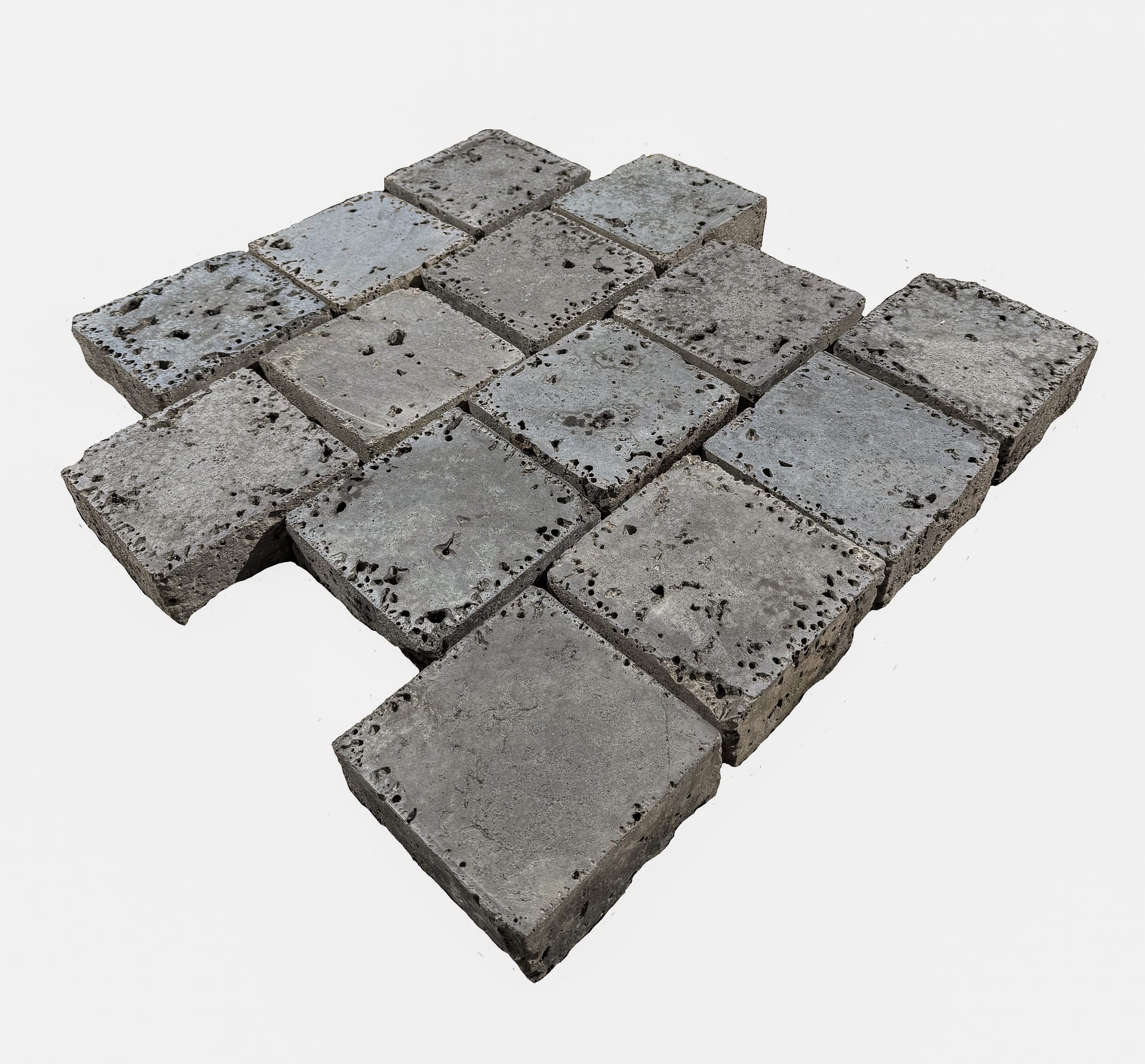 A reclaimed European slag natural stone from Germany. This is a building and landscape stone for outdoor commercial and residential applications. Relatively moderate in price.