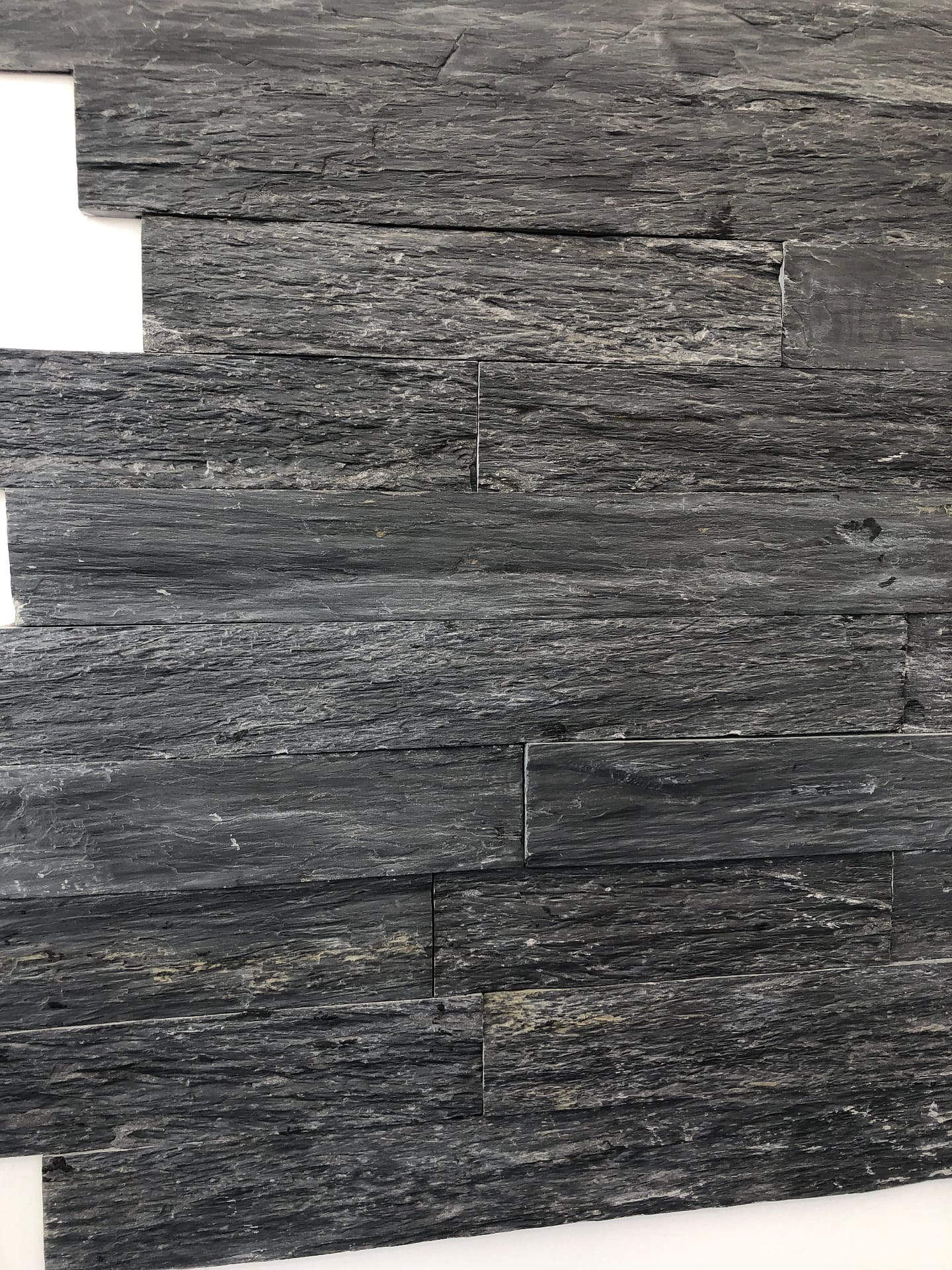 This Slate is dark gray even though it is named Black Slate. It also has some oxidation in the slabs which leaves a hint of Copper/Rust color. If this material is being used for an interior floor it is advised to only use a honed surface finish. If this material is used for exterior paving, the surface finish can be natural, brushed or honed depending on the space and client preference.