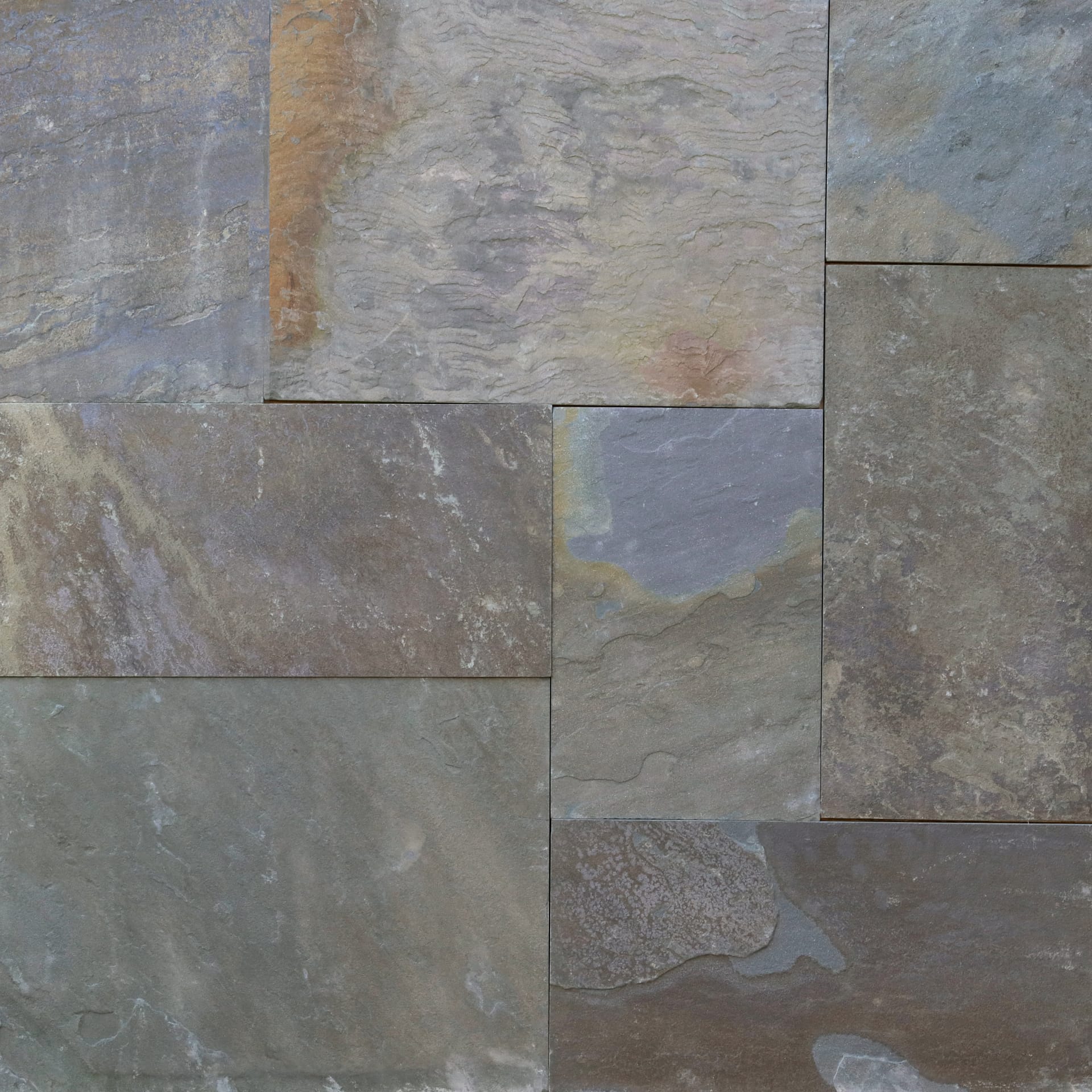 A quarried North American bluestone natural stone from New York. This stone can have a somewhat rough to rough texture. Dominant colors are brown, green and gray; with blue, orange/rust and purple secondaries. Exhibits “movement” and the color mix creates a cool feeling. Regular, random and blotched color patterns. This is a building and landscape stone for indoor and outdoor commercial and residential applications. Low to moderate on the price spectrum.