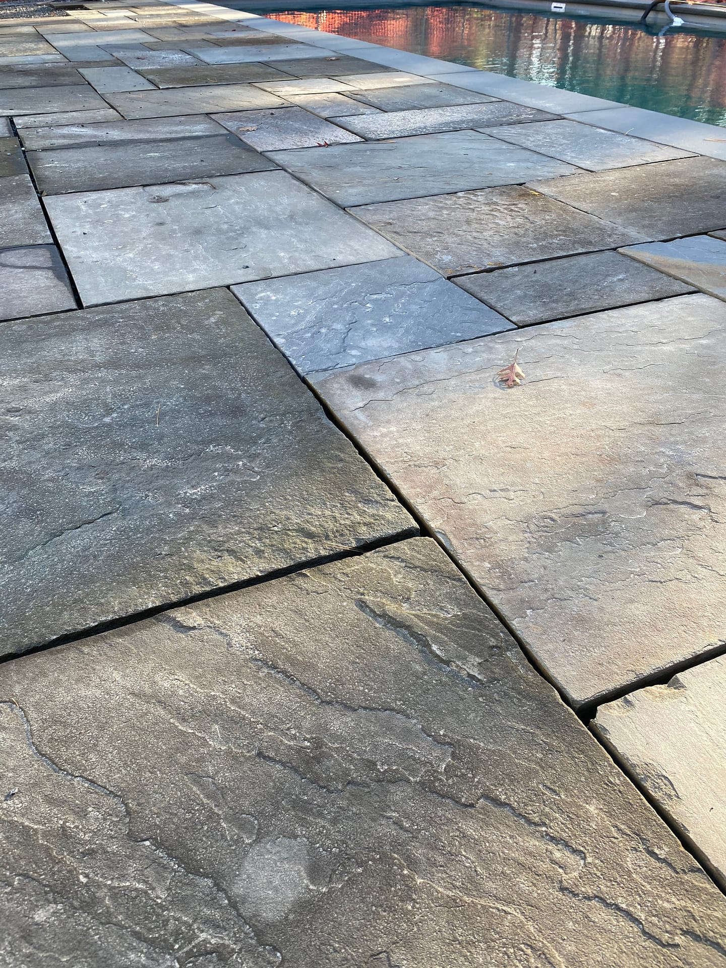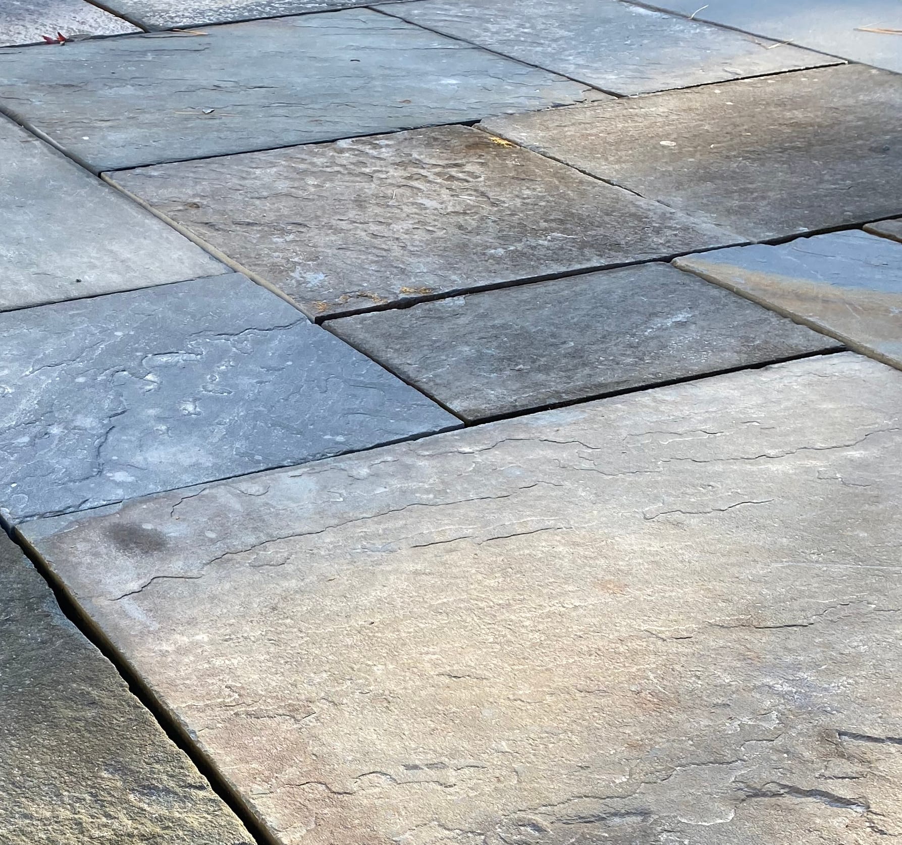 A reclaimed North American bluestone natural stone from Northeast. This stone can have a somewhat rough to very rough texture. Dominant colors are blue, brown and gray; with beige, white, tan and cream secondaries. Exhibits “movement” and the color mix creates a cool feeling. Random color pattern. This is a landscape stone for outdoor commercial and residential applications. Relatively higher in price.