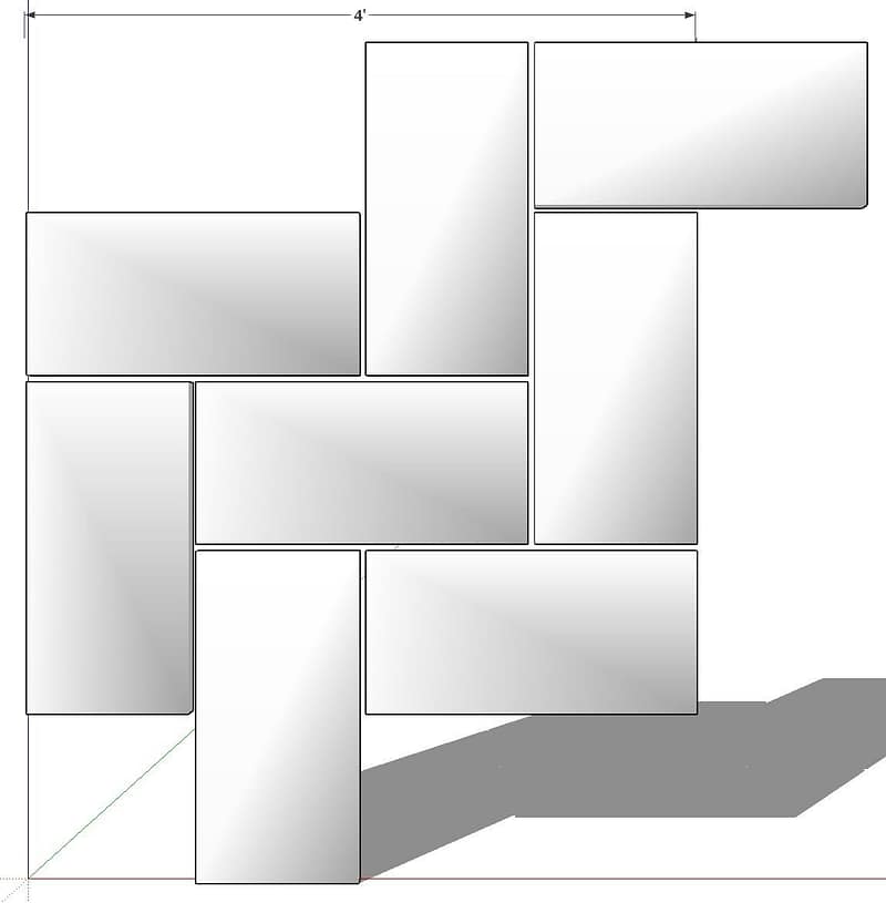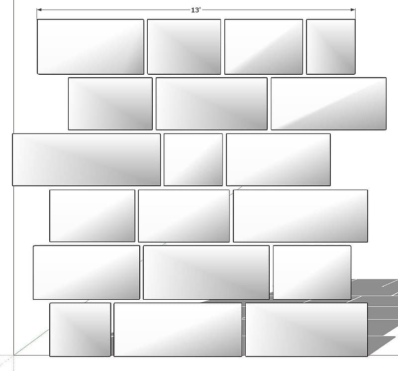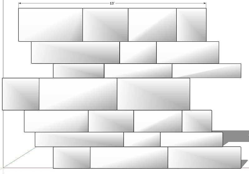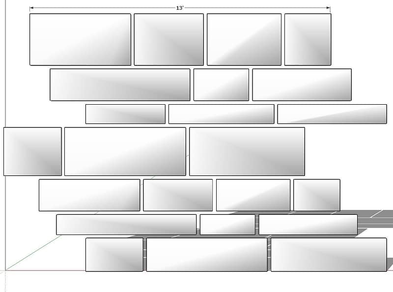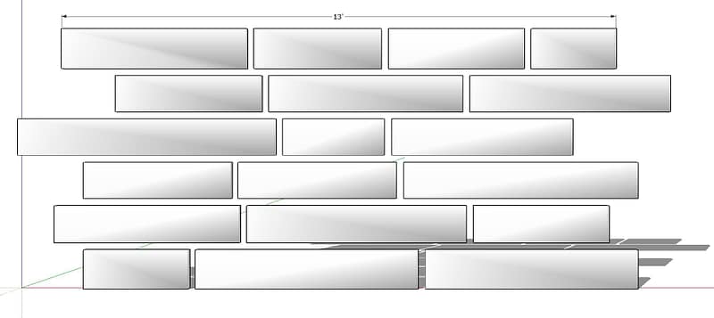 Planks (random 12 18 24 inch widths – random lengths 30 to 72 inches – tight joints)