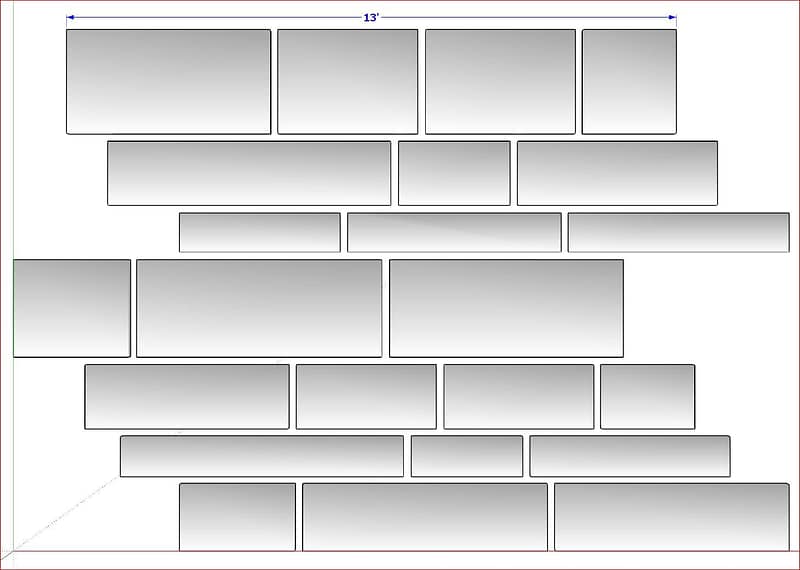 PS09T Paving Stones: Squares and Rectangles – Dimensional Planks (12 inch wide – random lengths 30 to 72 inches – tight joints)