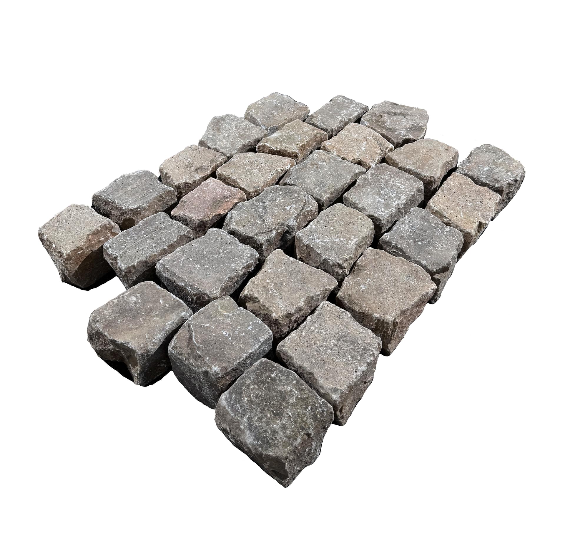 A reclaimed European mixed Porphyry and Limestone from Germany. This stone can have a slick to very rough texture. This is a building and landscape stone for outdoor commercial and residential applications. Relatively moderate in price.
