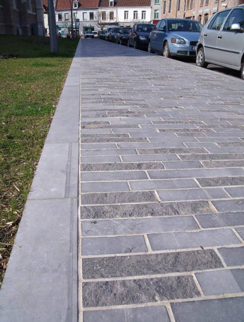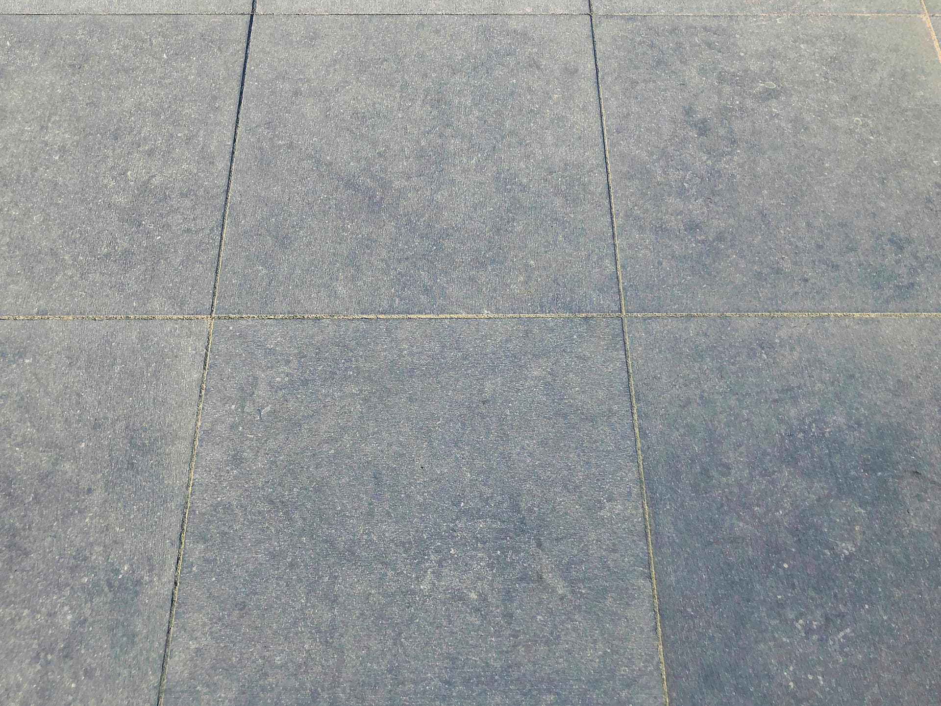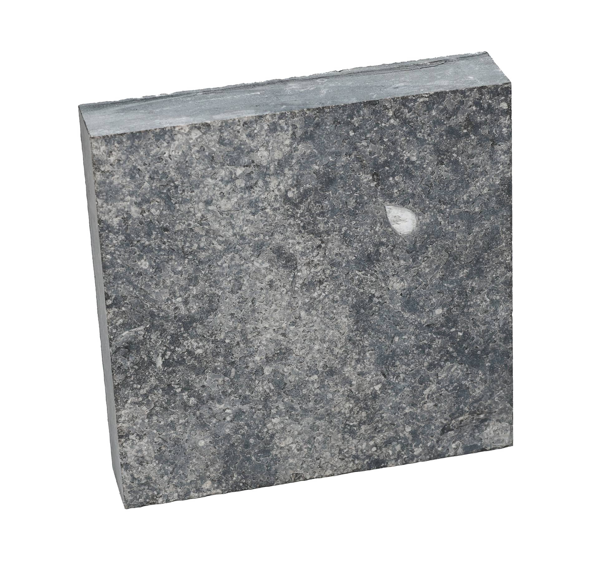 A quarried European limestone natural stone from Belgium. This stone can have a smooth to very rough texture. Dominant colors are blue and gray. The color mix creates a cool feeling. Regular color pattern. This is a landscape stone for outdoor commercial and residential applications. Relatively moderate in price.