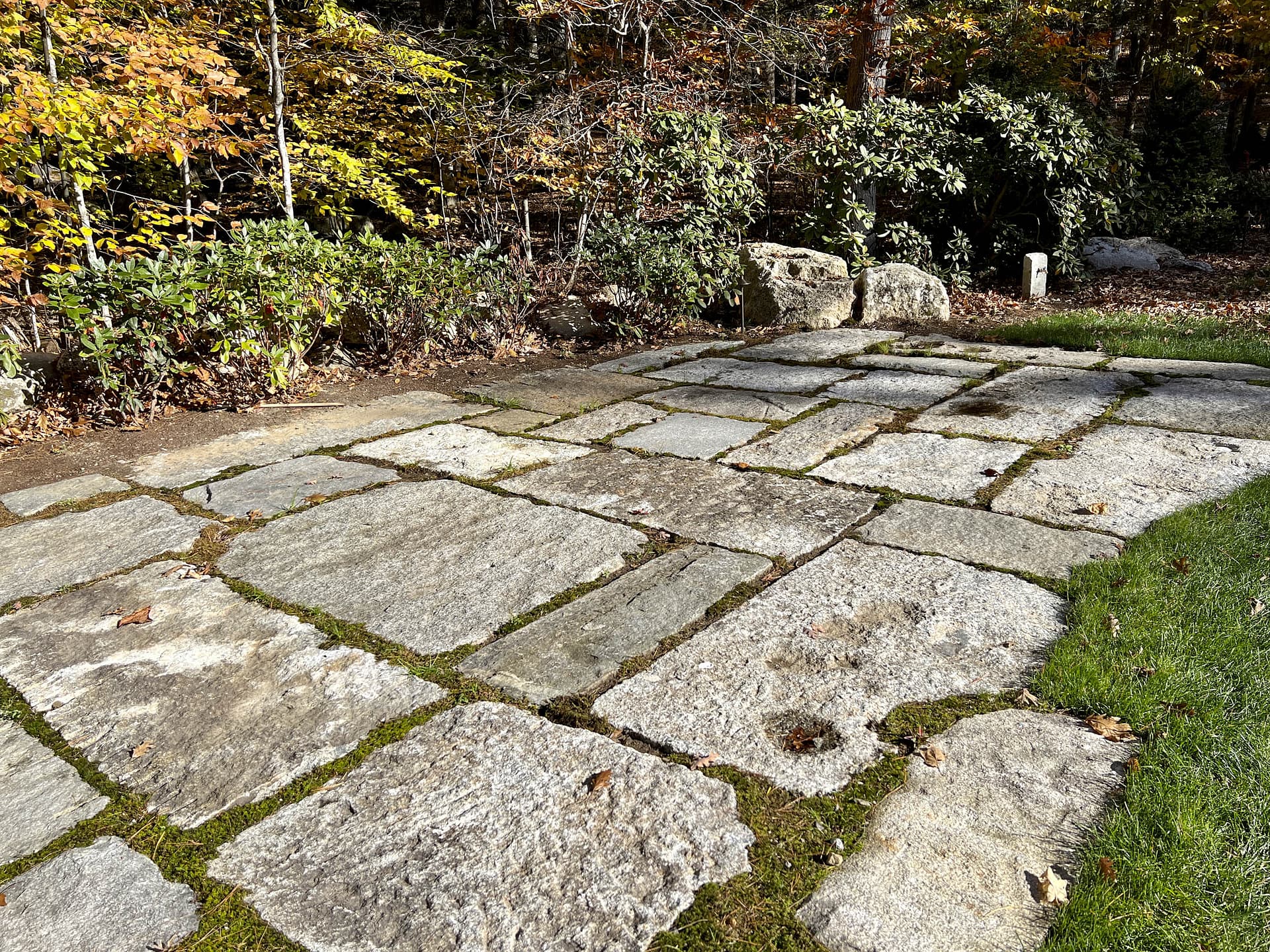 Our reclaimed granite skin pavers come from a variety of old weathered and worn granite material we reclaimed around the Northeast. The outer skins are sawn off turning them into beautiful and unique paving stones. This stone can have a slick to very rough texture. The dominant color is gray; with brown, rust, white and cream secondaries. Exhibits “movement” and the color mix creates a cool feeling. Random, speckled, fine speckled, blotched and cloudy color patterns. This is a landscape stone for outdoor commercial and residential applications. Relatively higher in price.