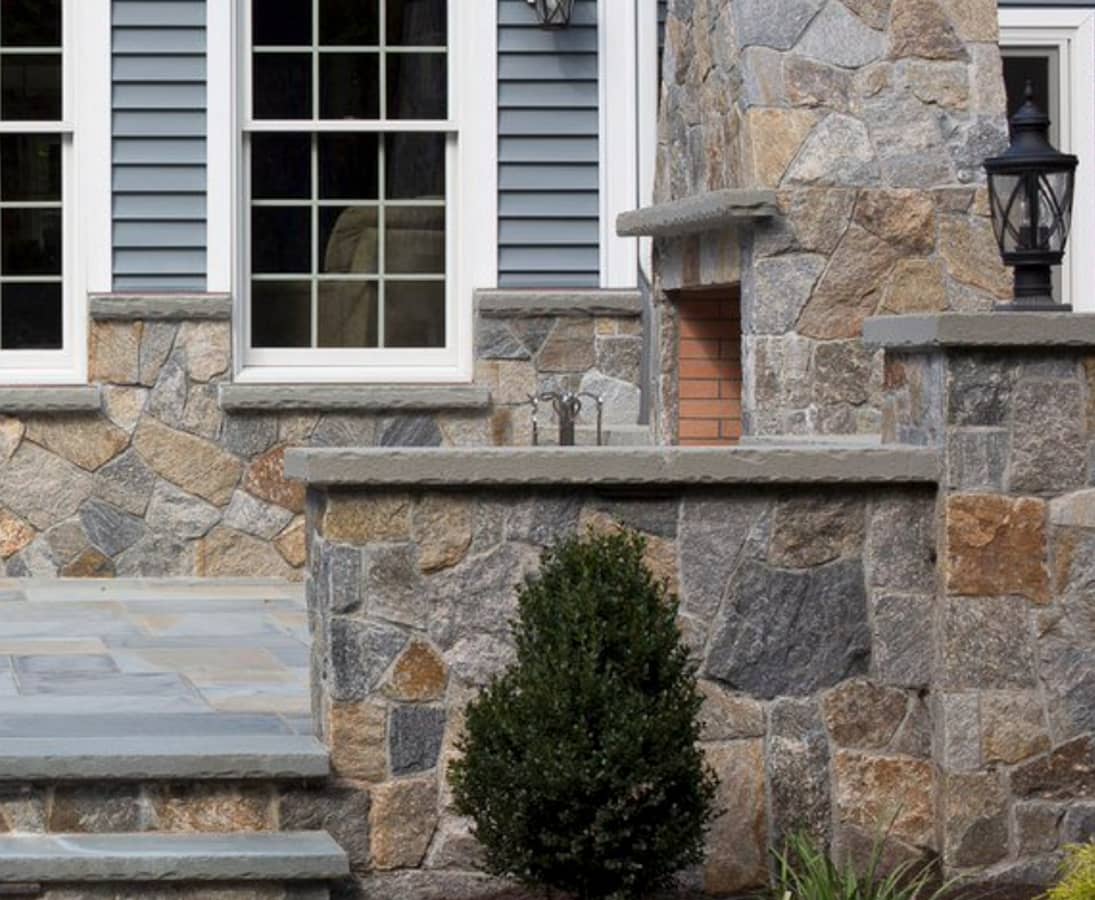 A quarried North American granite natural stone from Connecticut. This stone can have a somewhat rough to very rough texture. Dominant colors are brown, orange/rust and tan; with a gray secondary. Exhibits “movement” and the color mix creates a warm feeling. Random color pattern. This is a building and landscape stone for indoor and outdoor commercial and residential applications. Relatively moderate in price.
