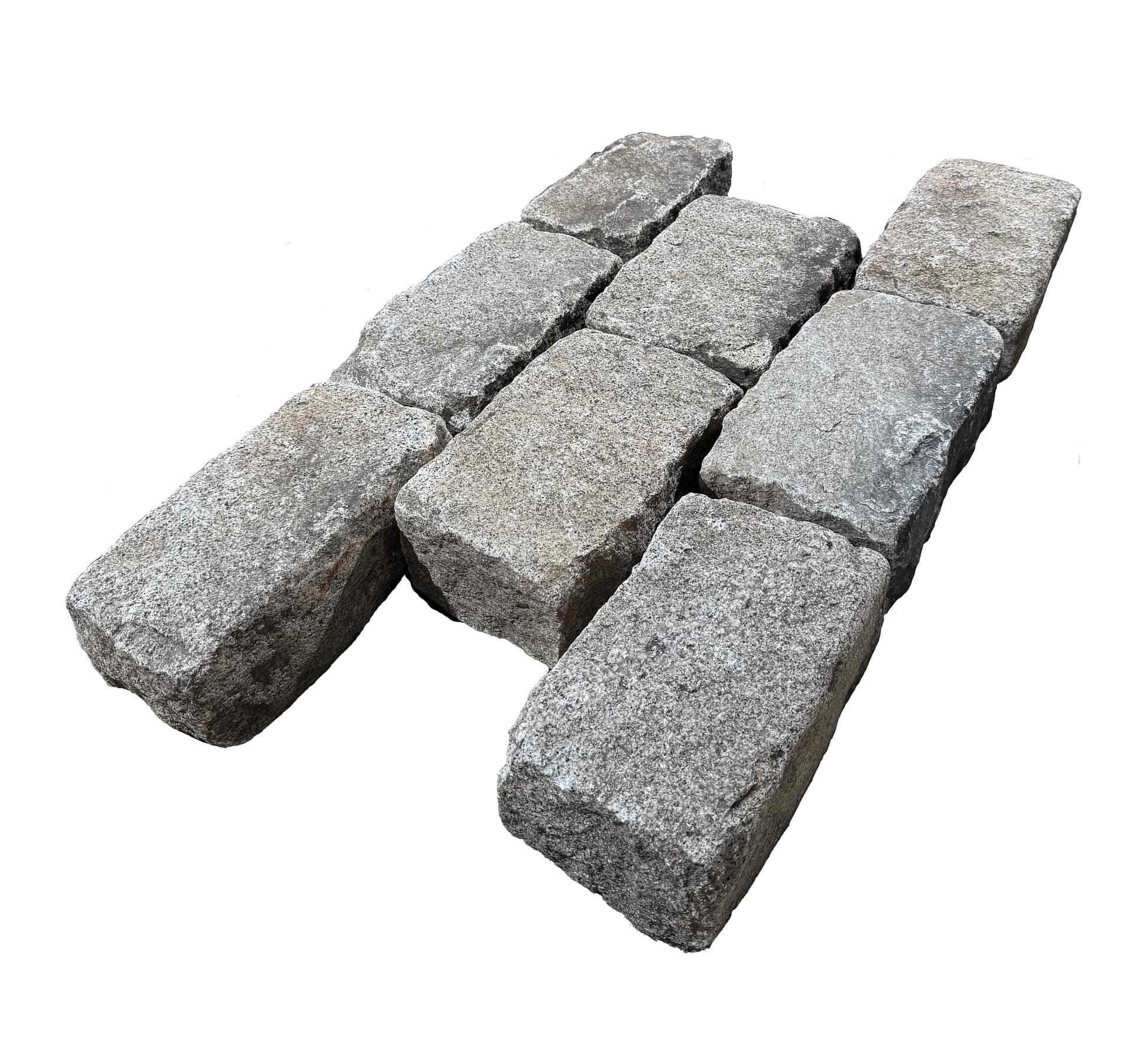 May be installed with worn tops up, or laid flat with wide sides up. 10″ to 12″ long by 6″ to 8″ tall by 4″ to 5″ wide.