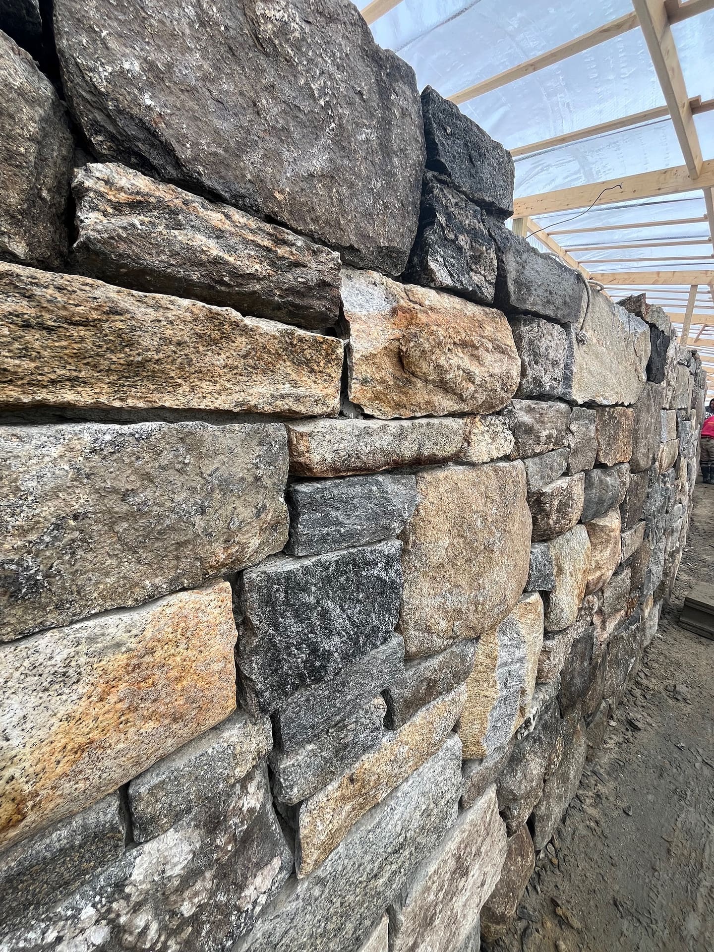 A harvested North American fieldstone from New England. This stone can have a somewhat rough to rough texture. Dominant colors are beige, gray and tan; with brown, green, orange/rust, purple, white and cream secondaries. This is a landscape stone for outdoor commercial and residential applications. Relatively moderate in price.